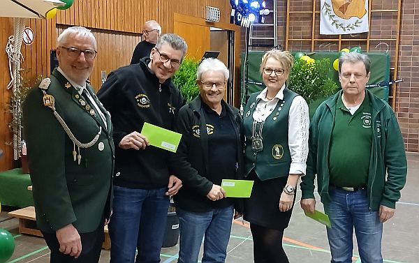 Der 1. Platz für Werner Rudolf (mitte), 2. Platz Rainer Zeisbrich (2.vl), 3. Platz Karin Gehler (2.vr), 4. Platz Bernhard Rack (rechts) und 1.Vorsitzender Dieter Gehler (links).