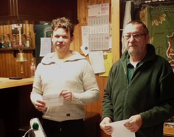 Am besten schafften das Bernhard Hettwer (221,1) und Beate Blecker (220,9) mit jeweil 0,6 Teilerabstand. Jedoch lag Bernhard mit seinem 2.besten Schuß (222,1) dichter als Beate (215,6). Damit lag die Reihenfolge fest: